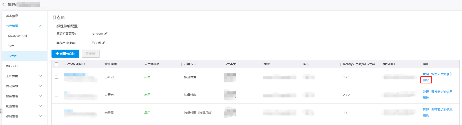 本章将介绍如何通过容器服务控制台删除已创建的节点池,操作步骤如下: