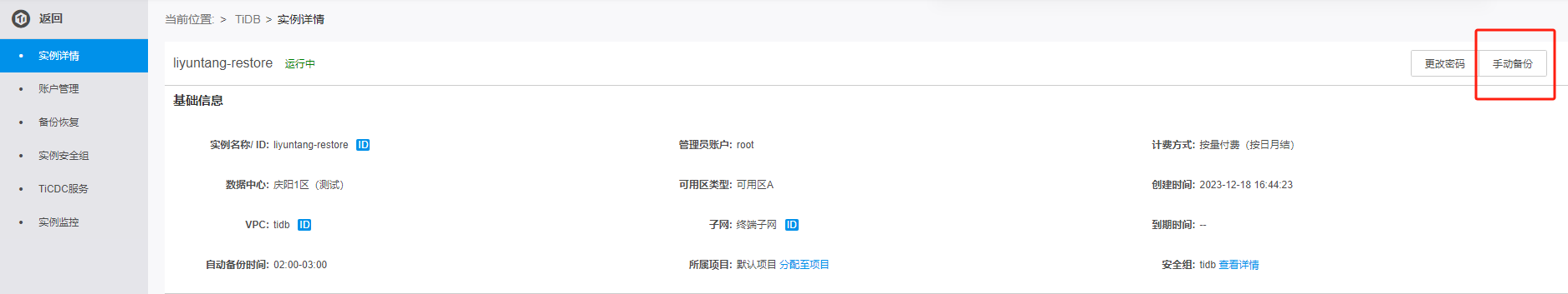 入口二:直接点击左侧菜单栏“备份恢复”,添加“手动备份”