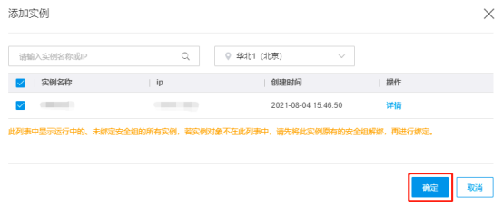 注意:此列表仅显示未绑定安全组的实例,若想要添加已绑定安全组的实例,需用户进入目标实例