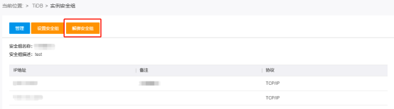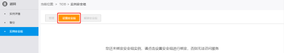 - 在TiDB控制台的左侧导航栏,点击安全组,进入安全组页面。