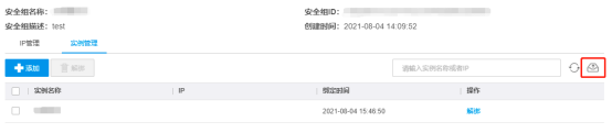 - 若需要在本地查看安全组信息(安全组IP列表/绑定实例列表)的话,可以导出现在安全组信息到本地。勾选某个或者某些IP实例,甚至是全选。