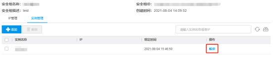 - 如要在此安全组中解绑实例,在安全组实例管理页,勾选相应实例,点击解绑即可。