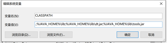 变量值:%JAVA_HOME%\lib;%JAVA_HOME%\lib\dt.jar;%JAVA_HOME%\lib\tools.jar
