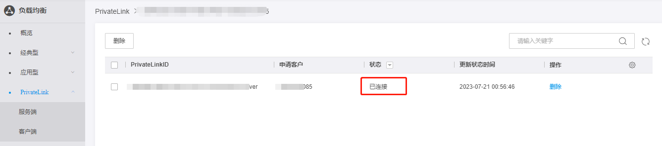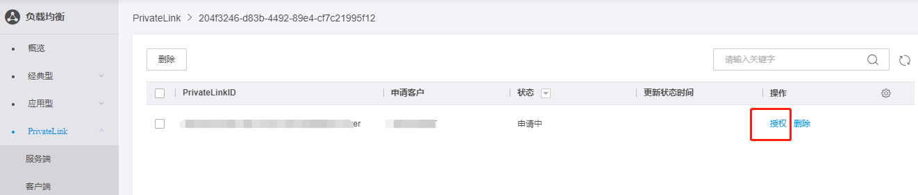 d. 创建客户端,请参见https://docs.ksyun.com/documents/40418?type=3,客户端申请建立Private Link之后,服务端进行“授权”,同意建立连接