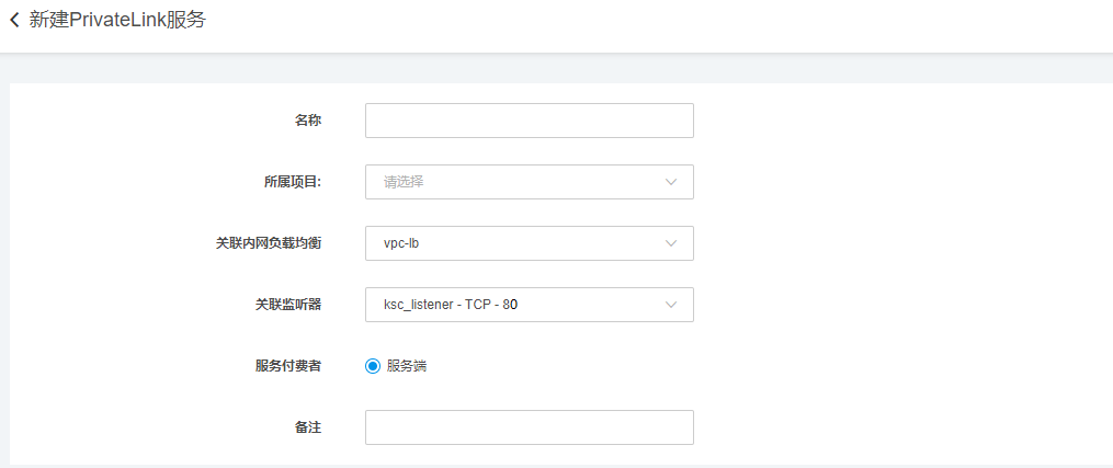 b. 输入名称,选择项目制,选择想关联的内网负载均衡和监听器,点击“立即购买”