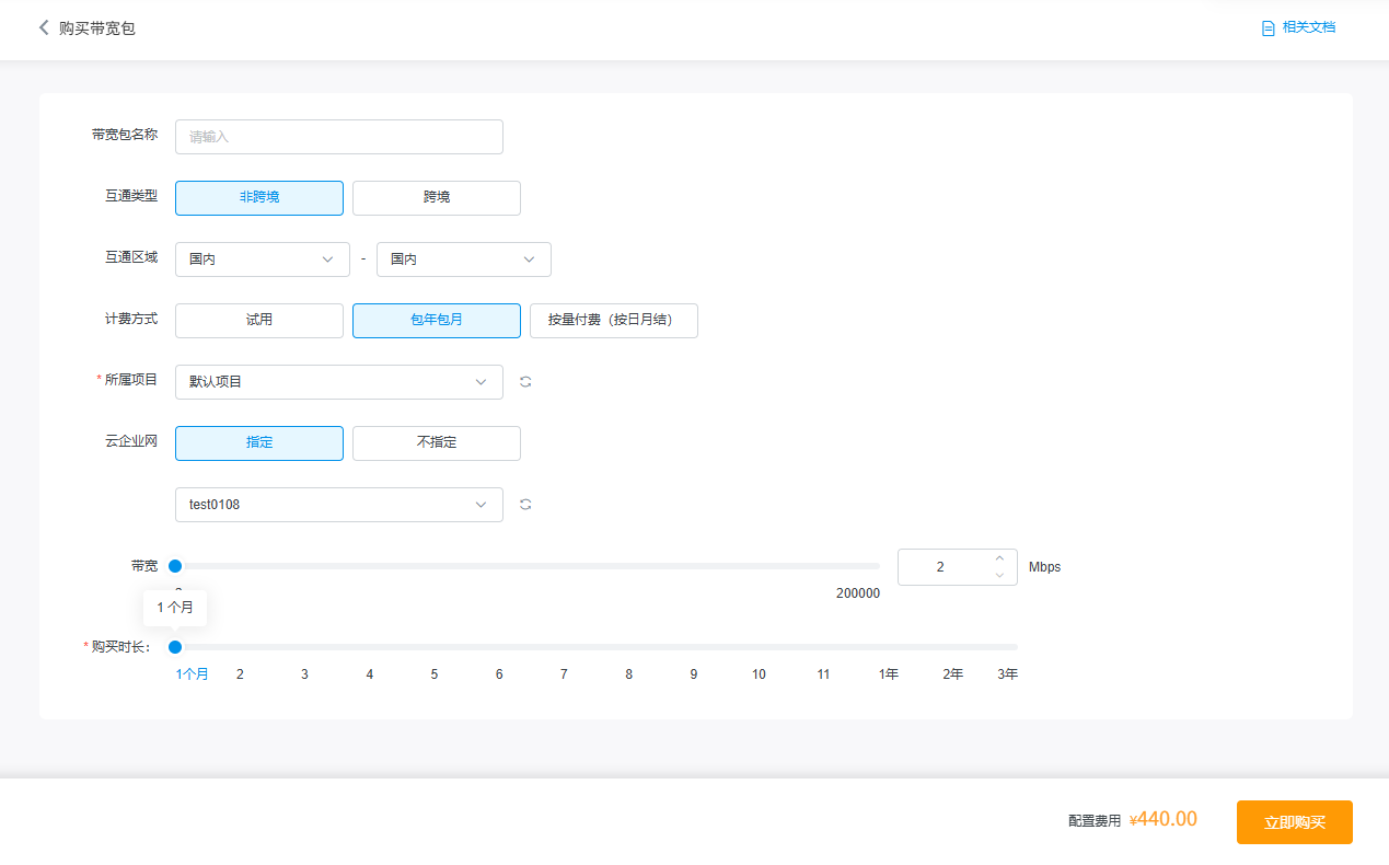 • 目前带宽包支持包年包月和按量付费(按日月结)。