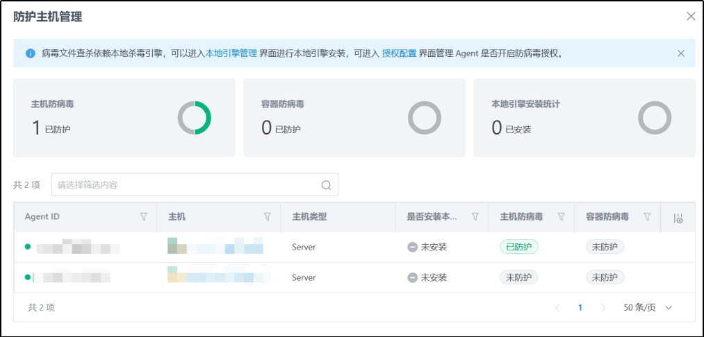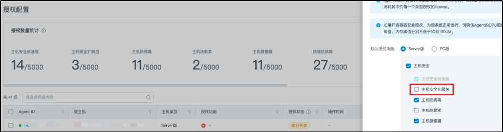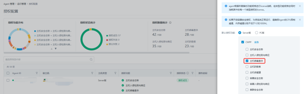 只有购买了“主机病毒查杀”或“终端病毒查杀”产品,且给Agent分配了“主机病毒查杀”或“终端病毒查杀”的授权,Agent主机才具有病毒防护功能。