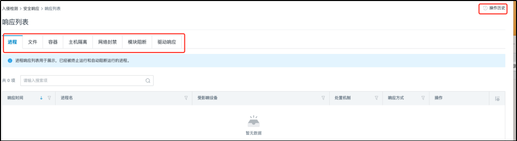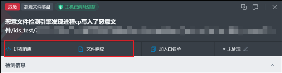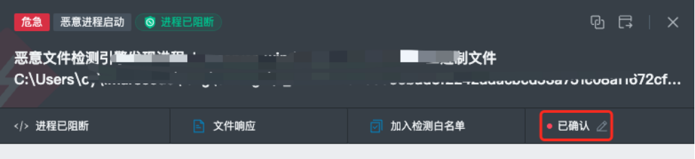 注意:只有对进程、文件等元素做了响应,才会有这个响应标识,仅修改告警处理状态,则不会出现这个标识。