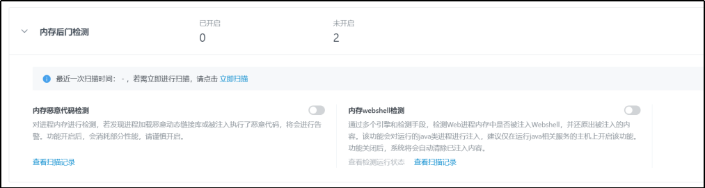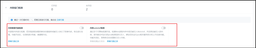 可通过“未开启” 的数量,判断对应检测能力的功能是否全部开启。