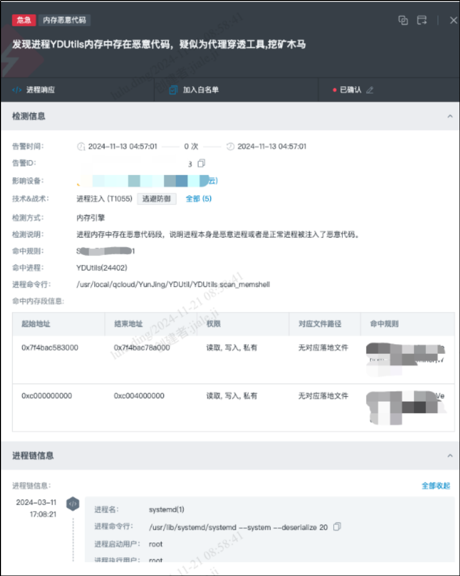 当出现误报时,可以将该进程加入白名单,后续将不再对该进程进行告警。