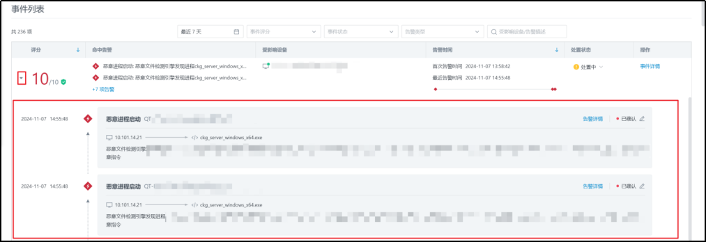 不同告警,详情界面展示的信息内容不同,用户可根据告警详情信息进行相关研判。