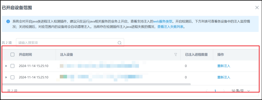站点信息:指系统注入的进程使用到的web服务。不同java进程可能由不同的应用服务启动。