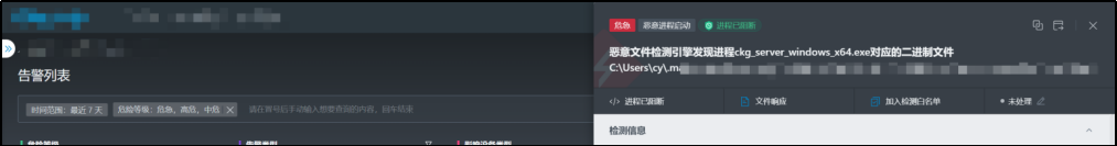 告警详情界面,可手动对恶意进程或文件进行响应。