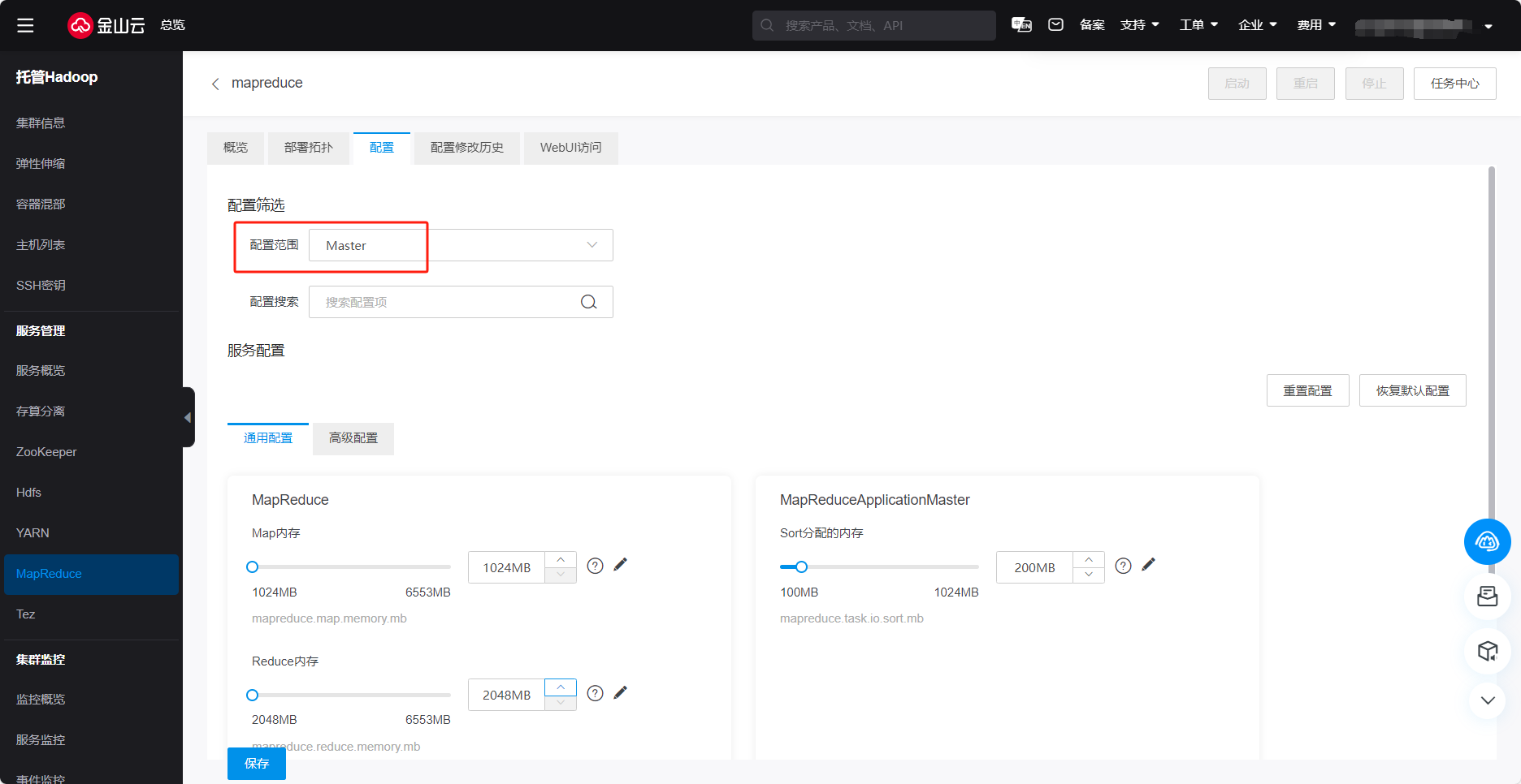 7.点击下方保存,重启该服务完成配置修改,可在配置修改历史查询配置修改状态。