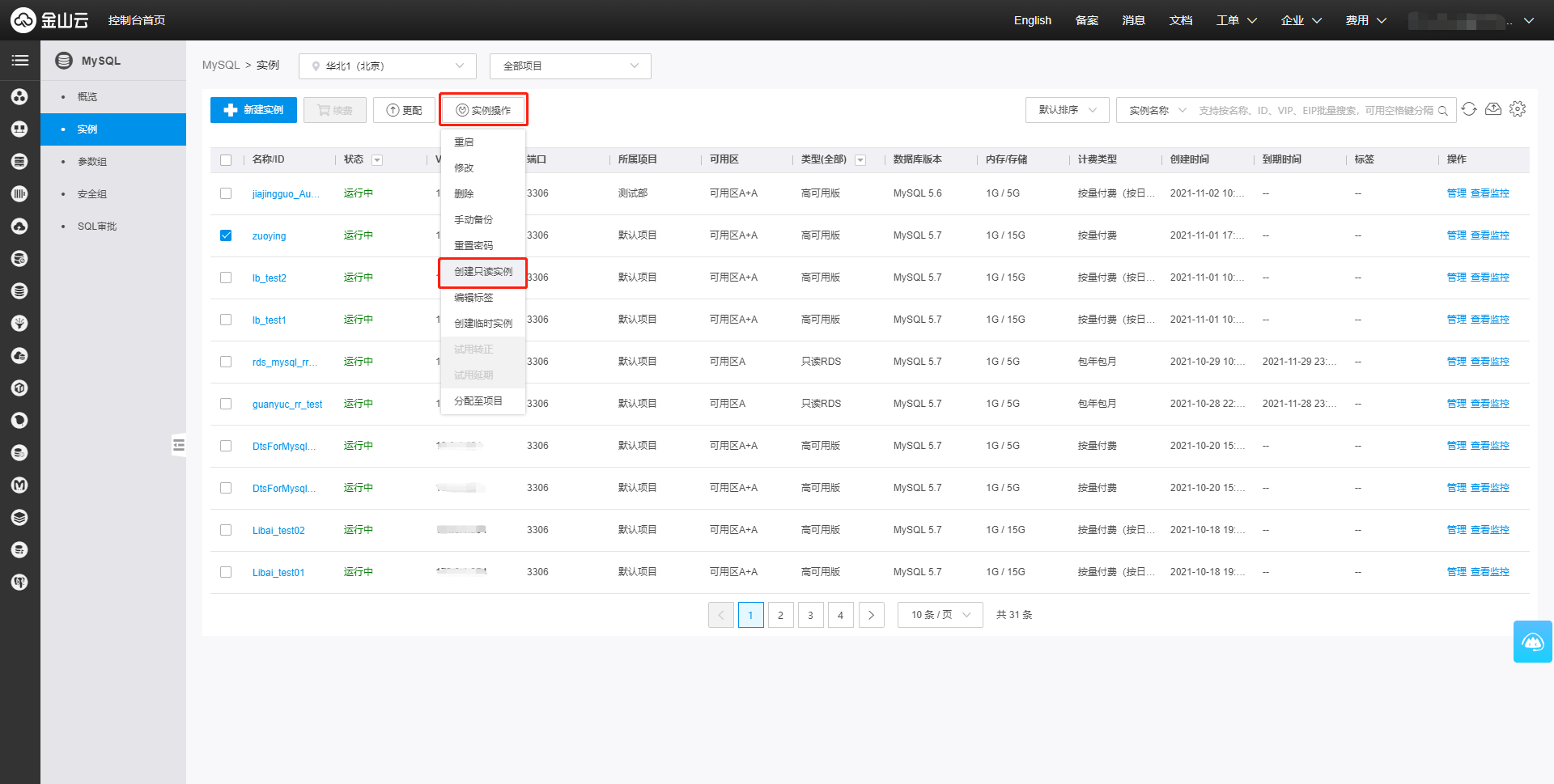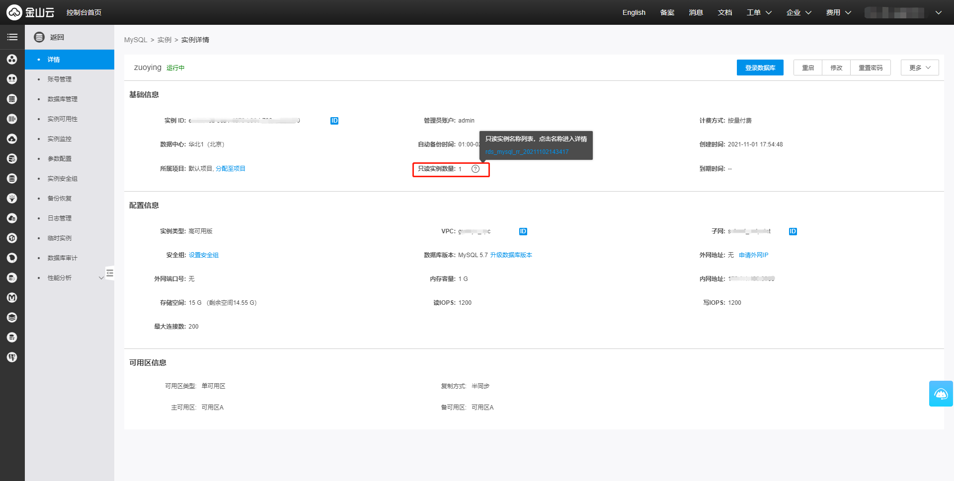 云数据库MySQL支持创建一个或多个只读实例,在对数据库有少量写请求,但有大量读请求的应用场景下,创建只读实例可以扩展数据库的读取能力。