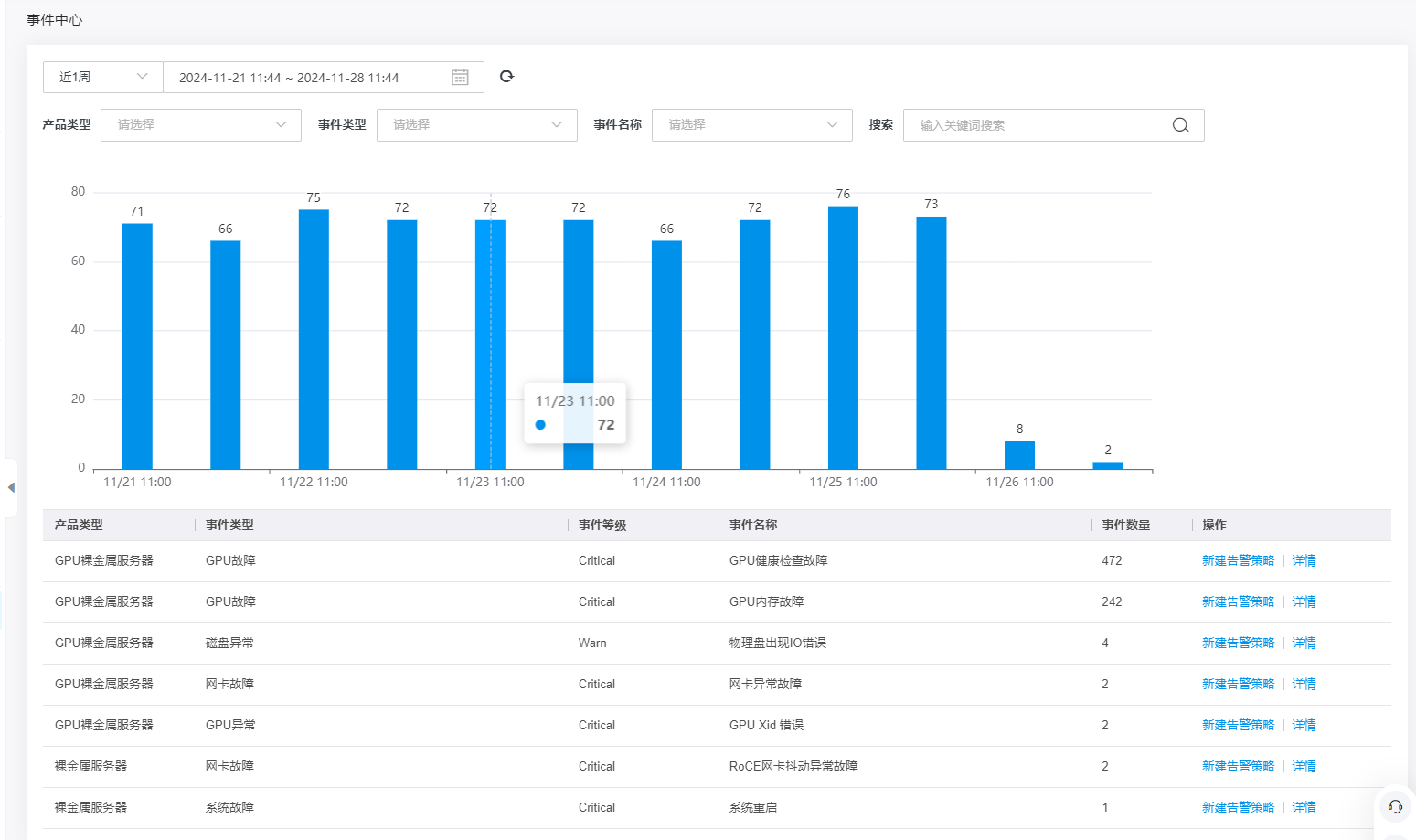 支持产品类型维度筛选查看告警历史;