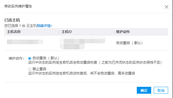 4、单击确定完成自定义实例维护属性设置,将在实例下一次经历相关系统事件时生效。