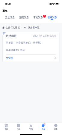 选择“系统通知”后,审批人会在首页处收到待审批的消息,点击消息可以选择进入审批页面进行审批。
