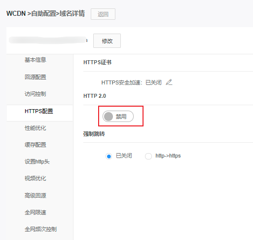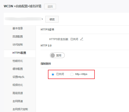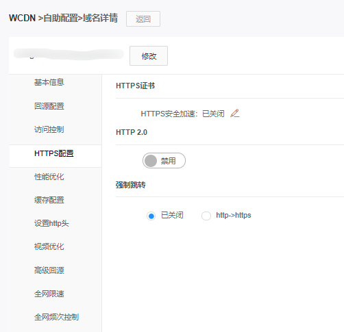 点击【修改】按钮即开启/关闭HTTPS证书安全加速服务
