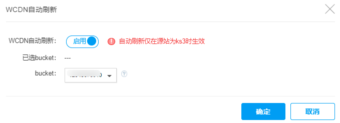 此功能仅适用于使用金山云KS3作为源站的情况。 当您在KS3更新或删除文件后,希望不再通过手动刷新文件而是通过与KS3进行联动实现WCDN的自动刷新时,您可以使用WCDN自动刷新功能。
