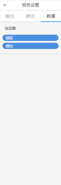 2.点击进入“报告设置”的属性面板,进入数据面板