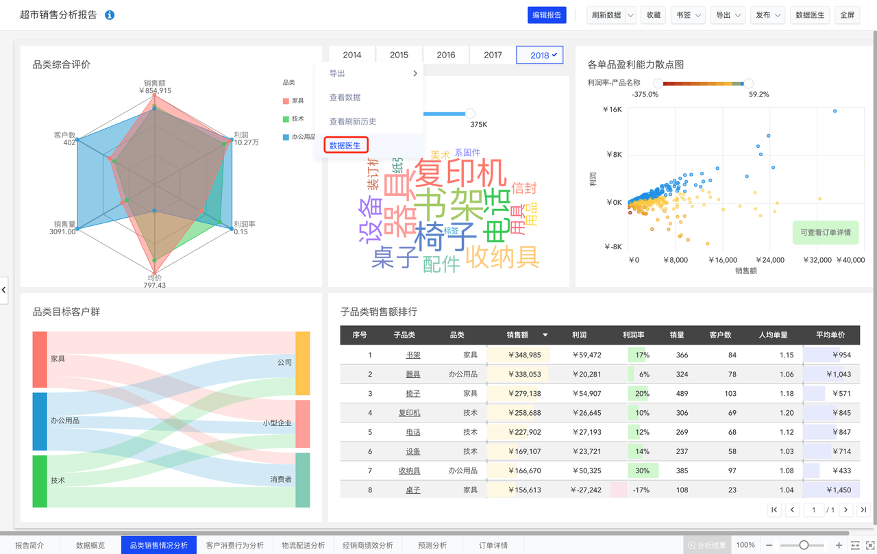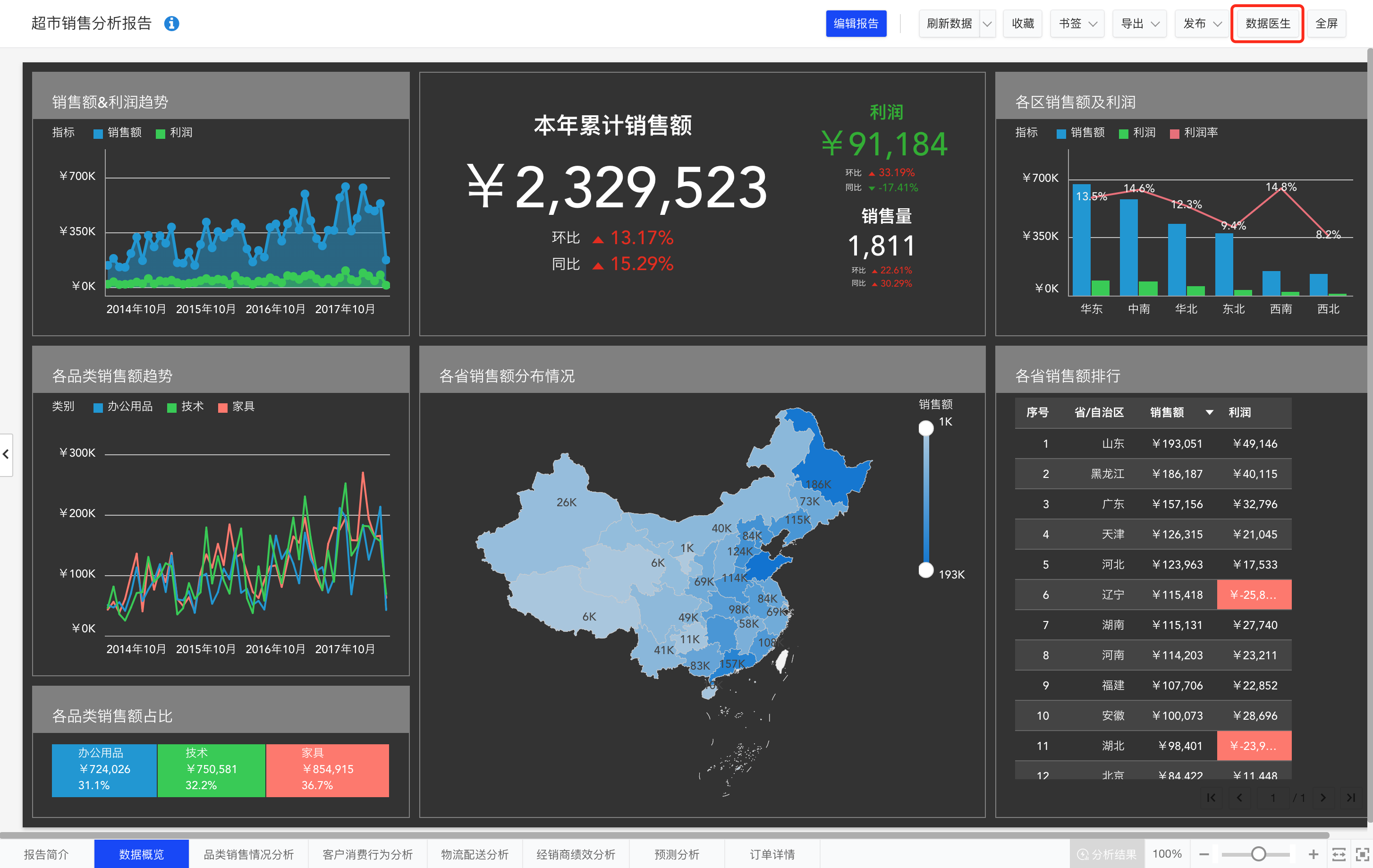 (1)阅览报告时,右上角【数据医生】按钮,点击则开启数据医生的诊断与分析: