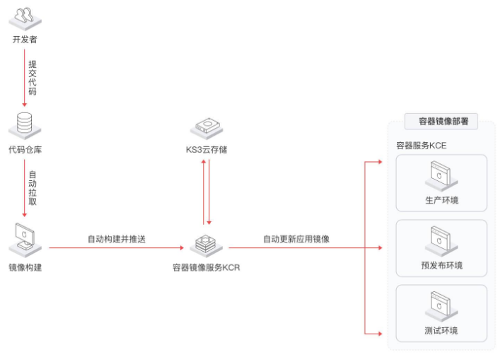 支持代码源更新自动触发镜像构建,并推送至仓库以及容器化服务部署流程。全链路自动交付,保障用户业务调度更灵活,执行效率更高。