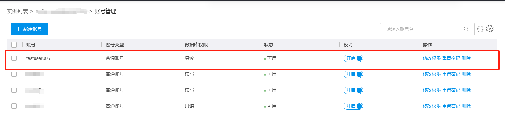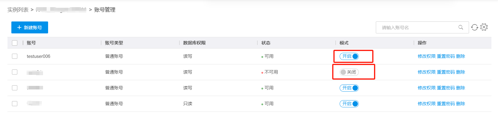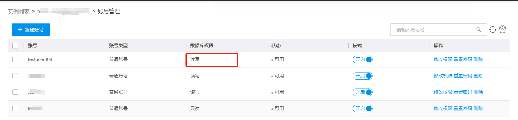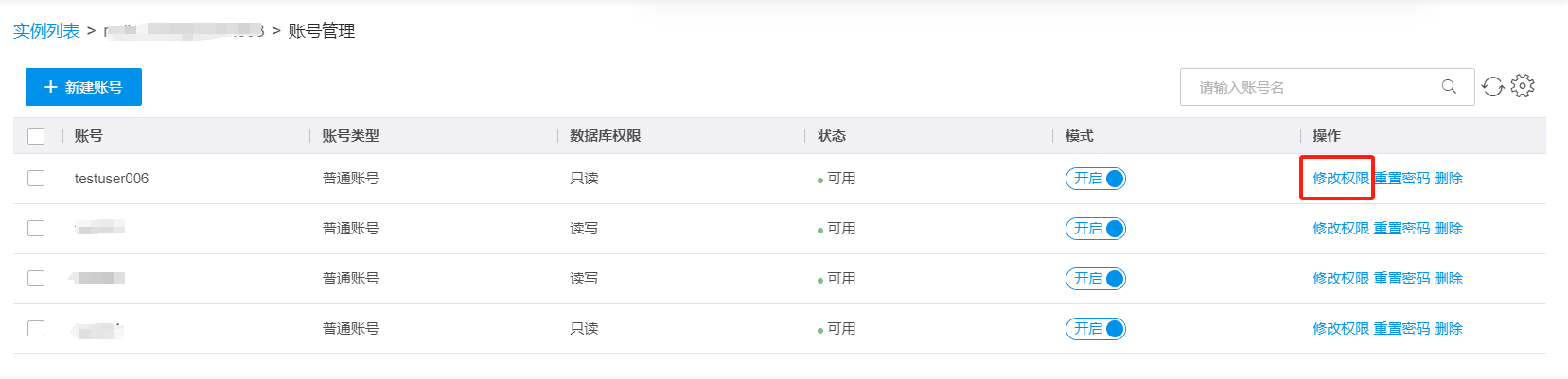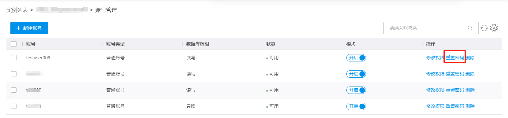 您可对数据库账号进行全生命周期管理,包括账号创建、状态变更、权限修改、密码重置和账号删除。