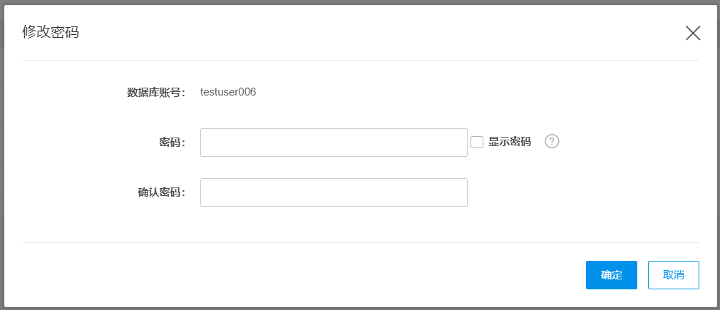 数据库账号 | 必填;长度为2~16个字符;由小写字母、数字或下划线组成;以字母开头,以字母或数字结尾;不能为root, rdsrepladmin, rdsadmin, dtsroot, sa, default。 |