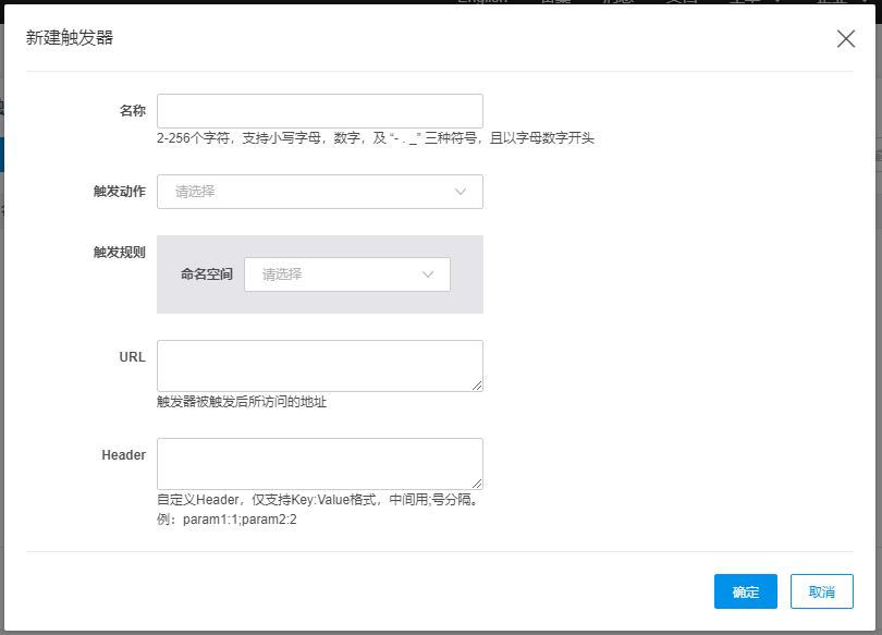 重新配置触发器信息,注:触发规则中命名空间不可更改。