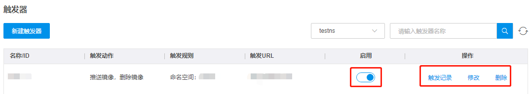 触发器创建成功后,即可进行查看触发记录以及修改、删除触发器等操作。
