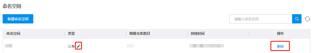 注: 若您当前命名空间内仍有镜像仓库,则该命名空间无法删除。 修改命名空间类型后,命名空间中的所有镜像仓库都将继承该属性。