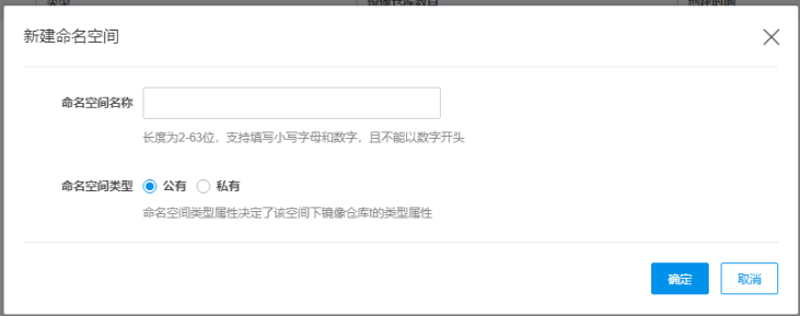注:若命名空间类型设置为公有,任何通过访问控制的客户端均无需登录即可拉取镜像。