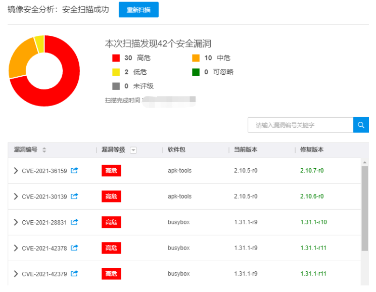 容器镜像服务KCR支持对托管的容器镜像进行安全漏洞扫描并产生扫描结果,对漏洞信息进行评估并给出修复建议。您可以查看容器镜像内潜在的安全漏洞信息,有效降低实际业务漏洞风险。