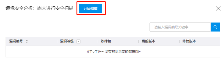 - 在弹窗中单击开始扫描即可进行镜像安全扫描。