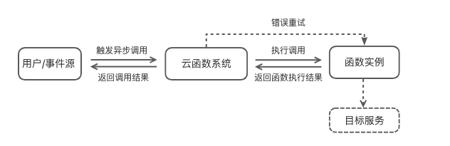 当您同步调用一个函数时,事件将直接触发函数,云函数会运行该函数并等待响应。适用于由HTTP请求触发,或需及时查看执行结果的场景。