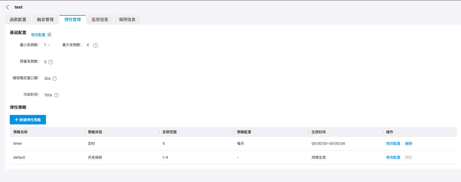 配置定时弹性策略:对于有时间规律的业务场景,定时弹性策略可以帮助预热函数,减少冷启动的发生。