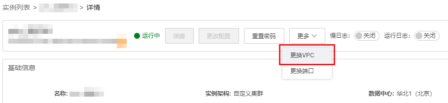 3.在实例详情页面,点击更多,选择更换VPC。