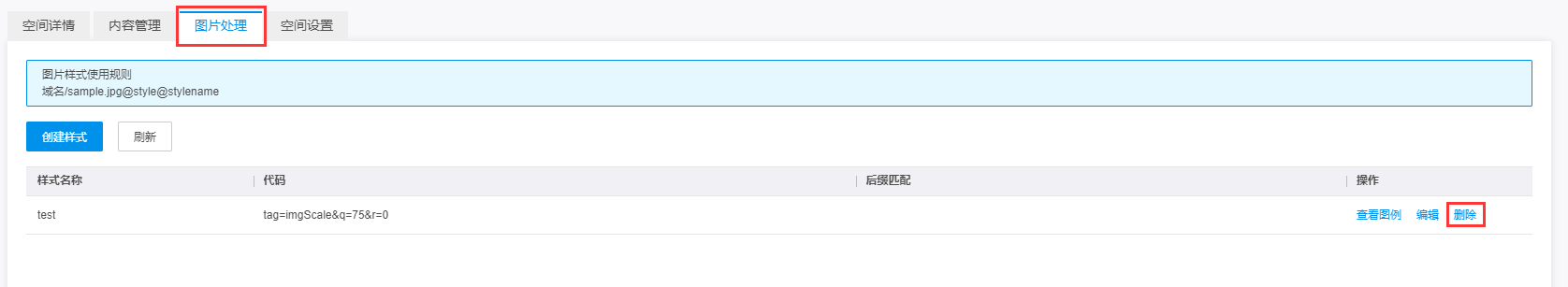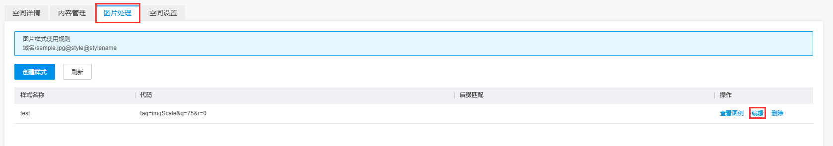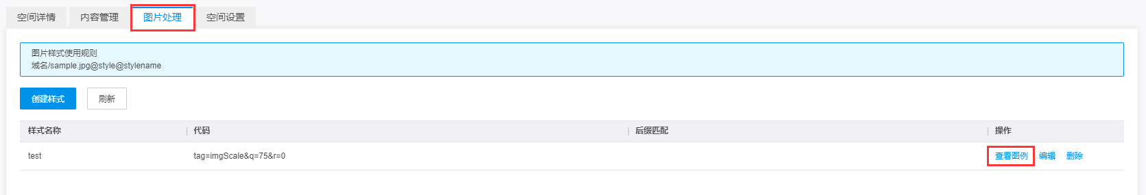 您可以查看空间下面的图片处理,将会显示所有已经创建的图片式样,并且可以预览当前图片的样式效果。