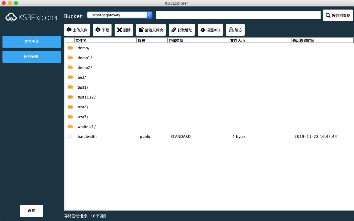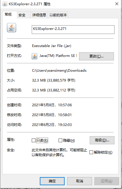工具下载完成后,解压文件,通过右键单击属性改变文件夹中文件KS3Explorer-2.3.271的打开方式为“Java™ Platform SE binary”, 然后双击即可打开KS3Explorer工具,如图所示: