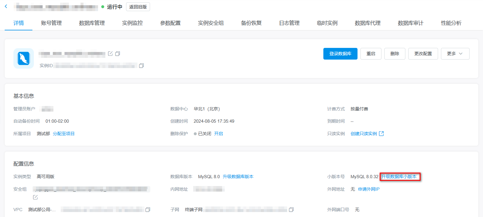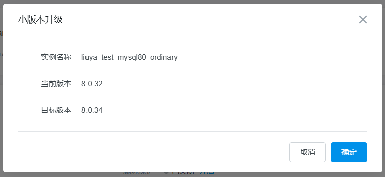 注意:当前仅MySQL 5.7、MySQL 8.0版本支持小版本升级功能