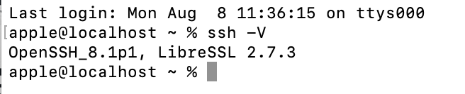 打开终端输入“ssh -V”检查是否安装了OpenSSH