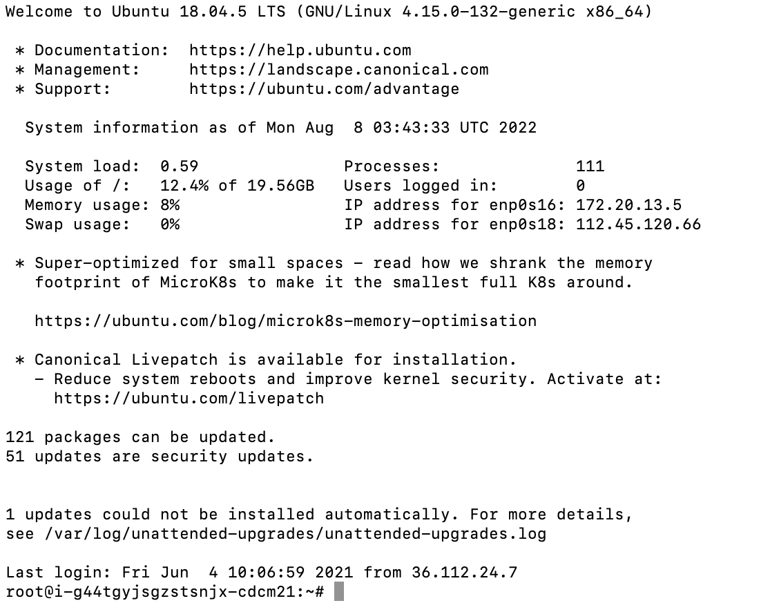 输入 ssh root@实例公网IP地址