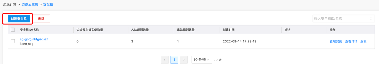 新建完成后,您可在安全组模块的列表处查看和编辑您新建的安全组。
