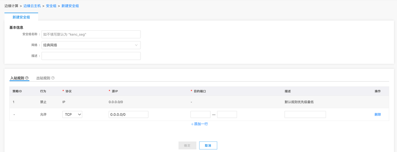 描述 | 安全组的描述,支持中英文小数特殊符号,为非必填项 |