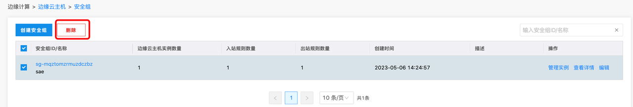 在安全组模块中,您可以在安全组列表处对安全组进行勾选删除,如下图所示: