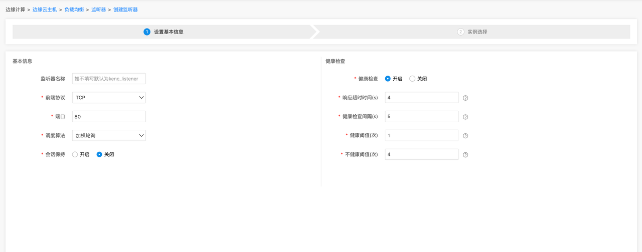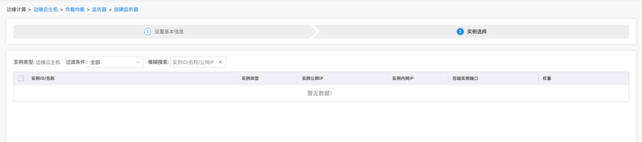 监听器信息填写完成后需要选择被监听的实例,确保实例状态被成功监听。