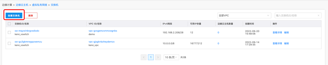1. 新建完成后,您可以在交换机管理的列表处查看和编辑您新建的交换机。