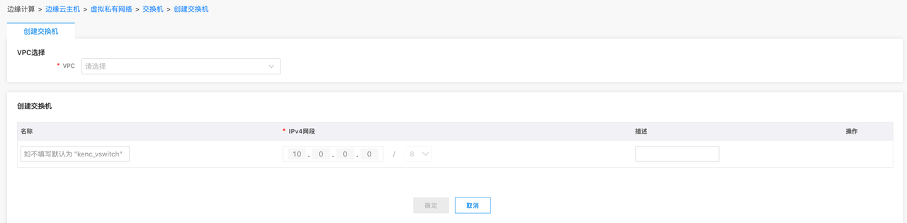3. 进入新建交换机页面后,您需要填写交换机的配置信息: