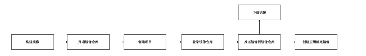 镜像使用流程如下图,具体可参考构建镜像、开通镜像仓库、创建项目、登录镜像仓库、推送镜像到镜像仓库和下载镜像。
